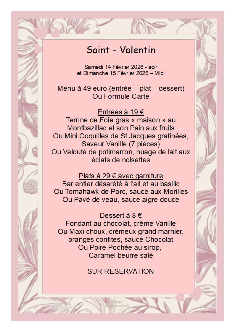Hors saison : Le Dimanche Midi sur réservation - Le Dimanche Soir Fermé de Octobre à Avril sauf pendant les vacances scolaires